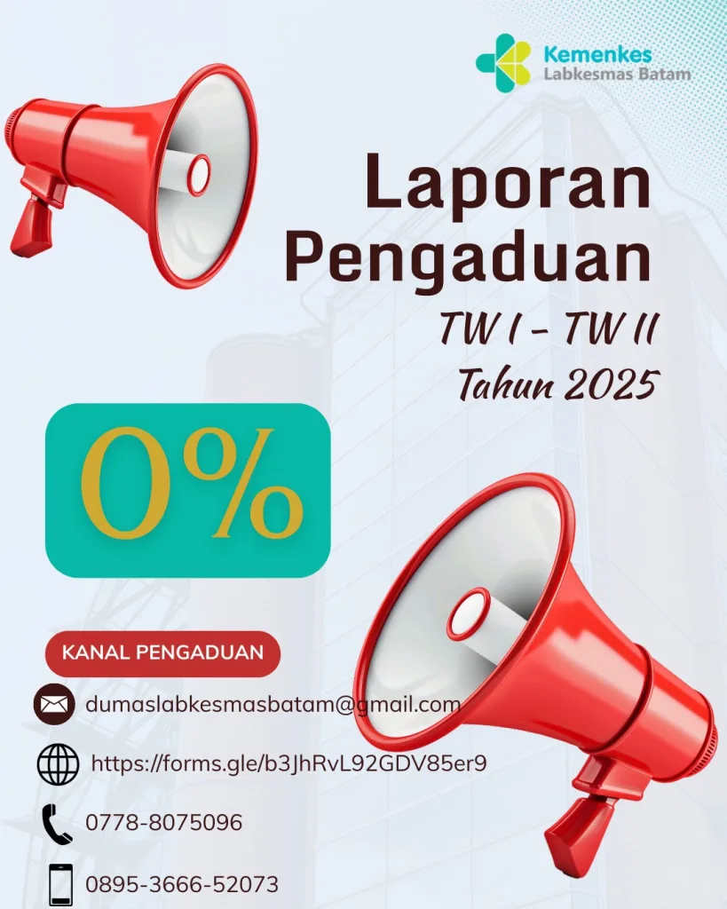 Salam Sehat, Balai Labkesmas Batam memiliki tim khusus yang menangani pengaduan masyarakat (Tim Dumas). Untuk laporan yang terjadi pada Triwulan I dan Triwulan II laporan pengaduan masyarakat yang masuk *NIHIL* Ayo dukung kami mewujudkan @labkesmas.batam Menuju Wilayah Bebas dari Korupsi (WBK) dan Wilayah Birokrasi Bersih Melayani (WBBM) Tidak Diperkenankan Meminta, Menerima dan/atau Memberikan Gratifikasi Serta Suap Dalam […]